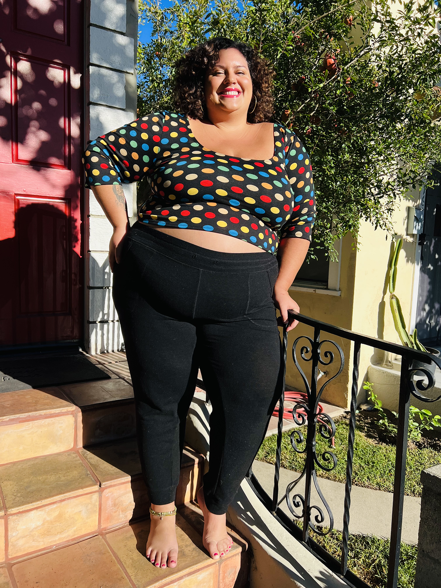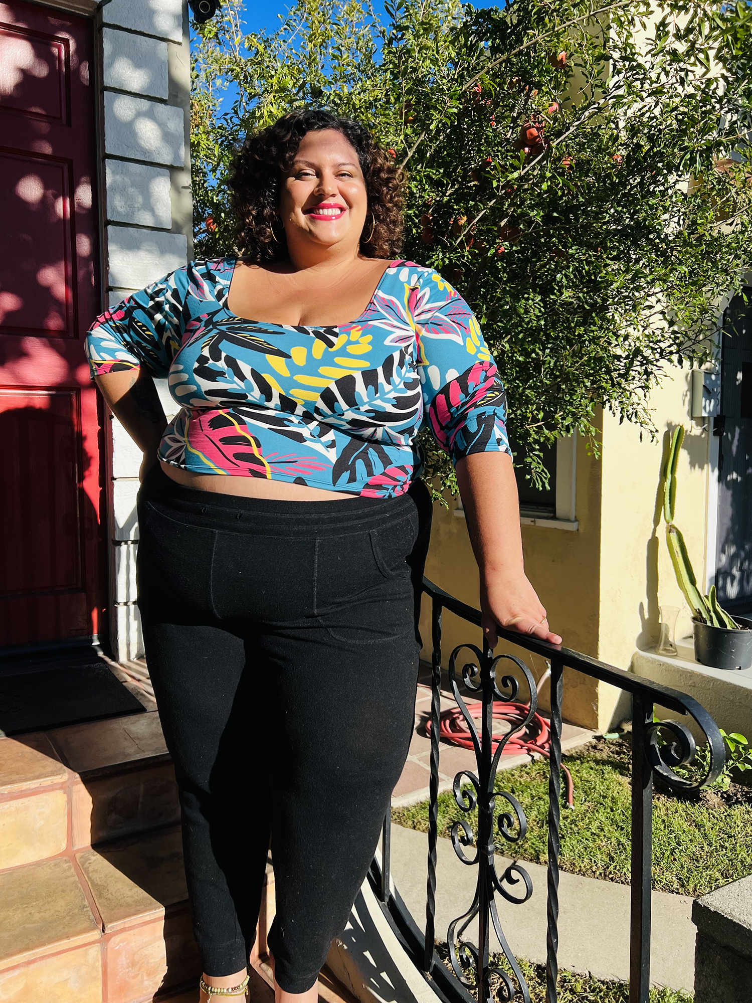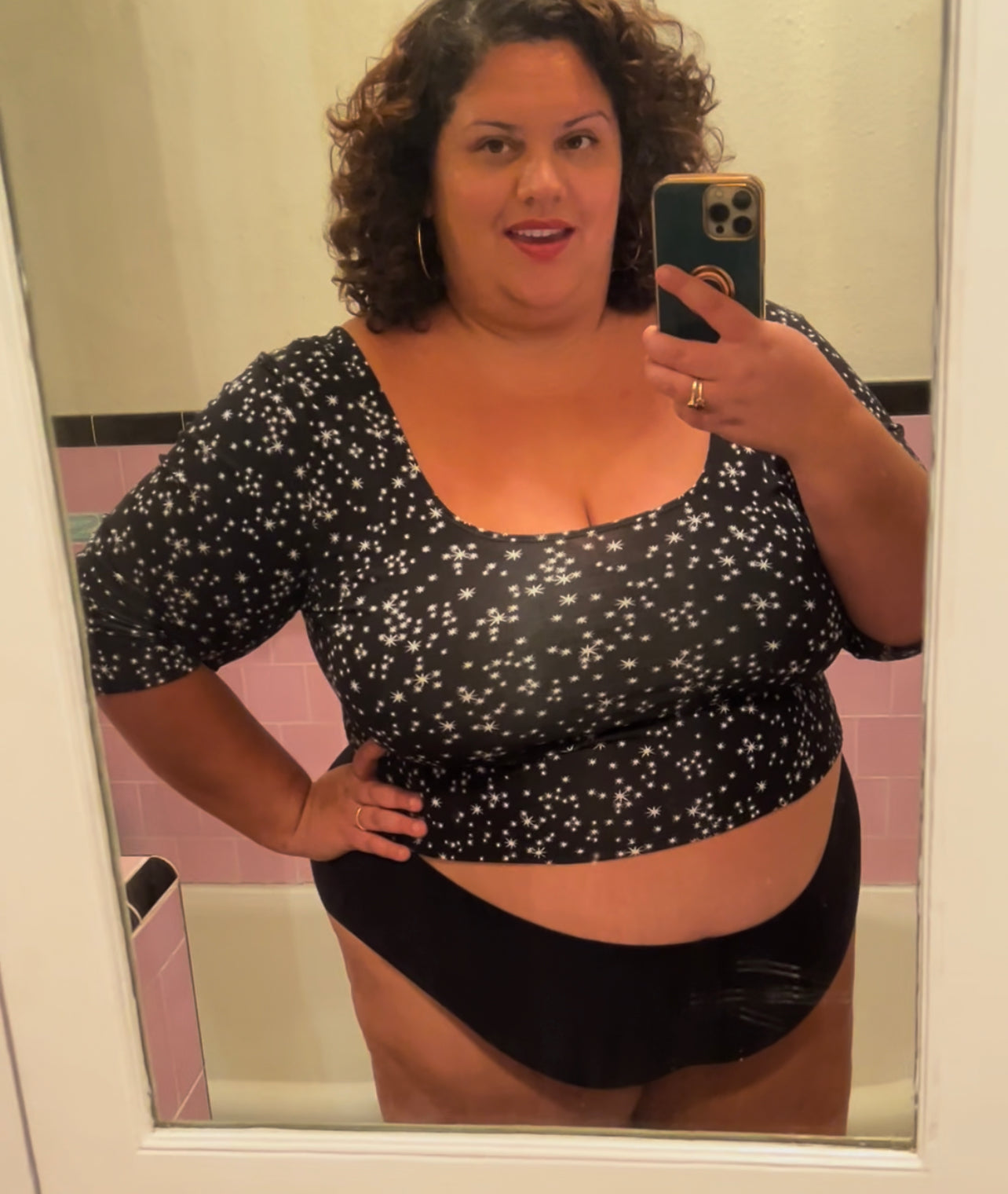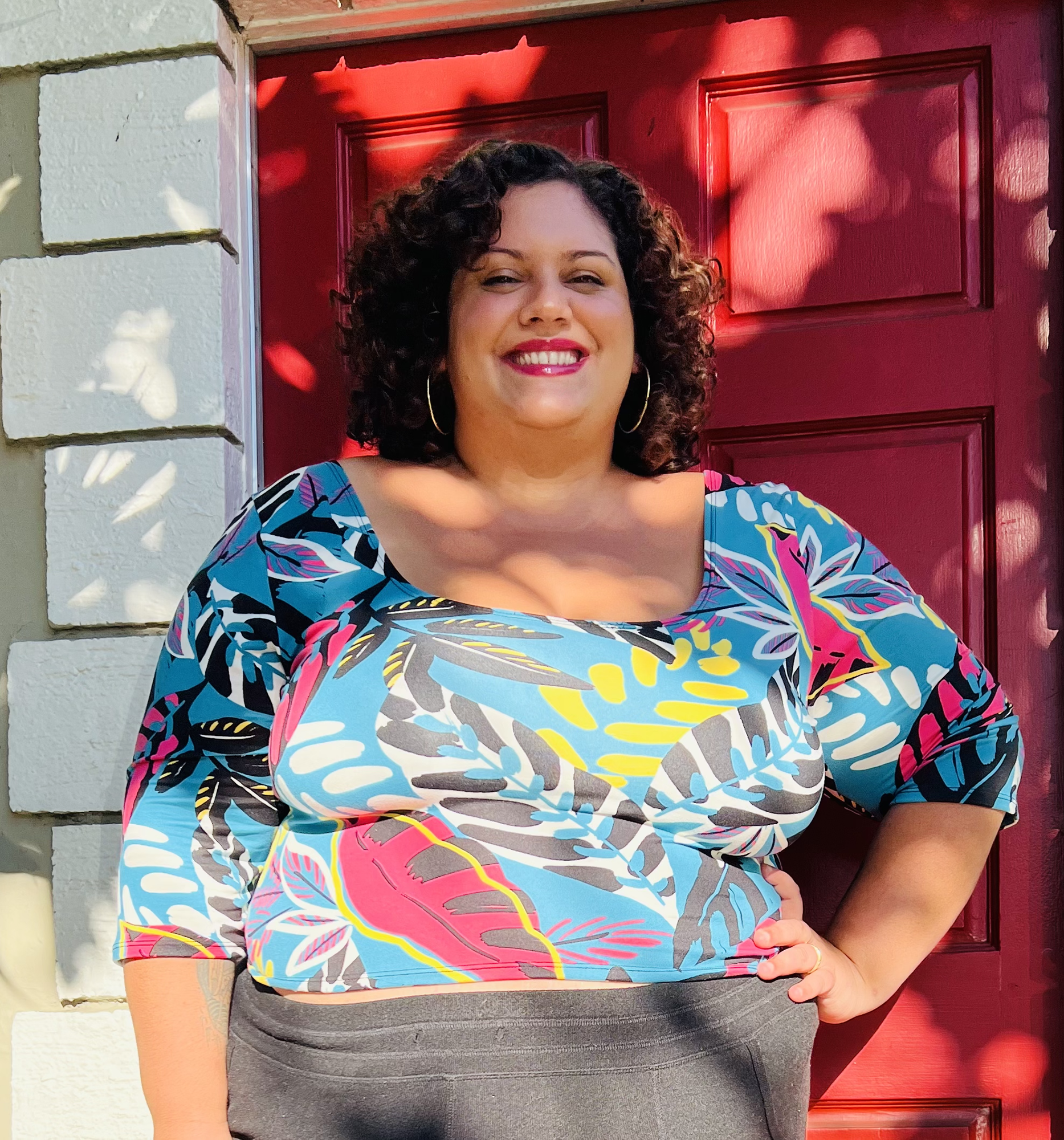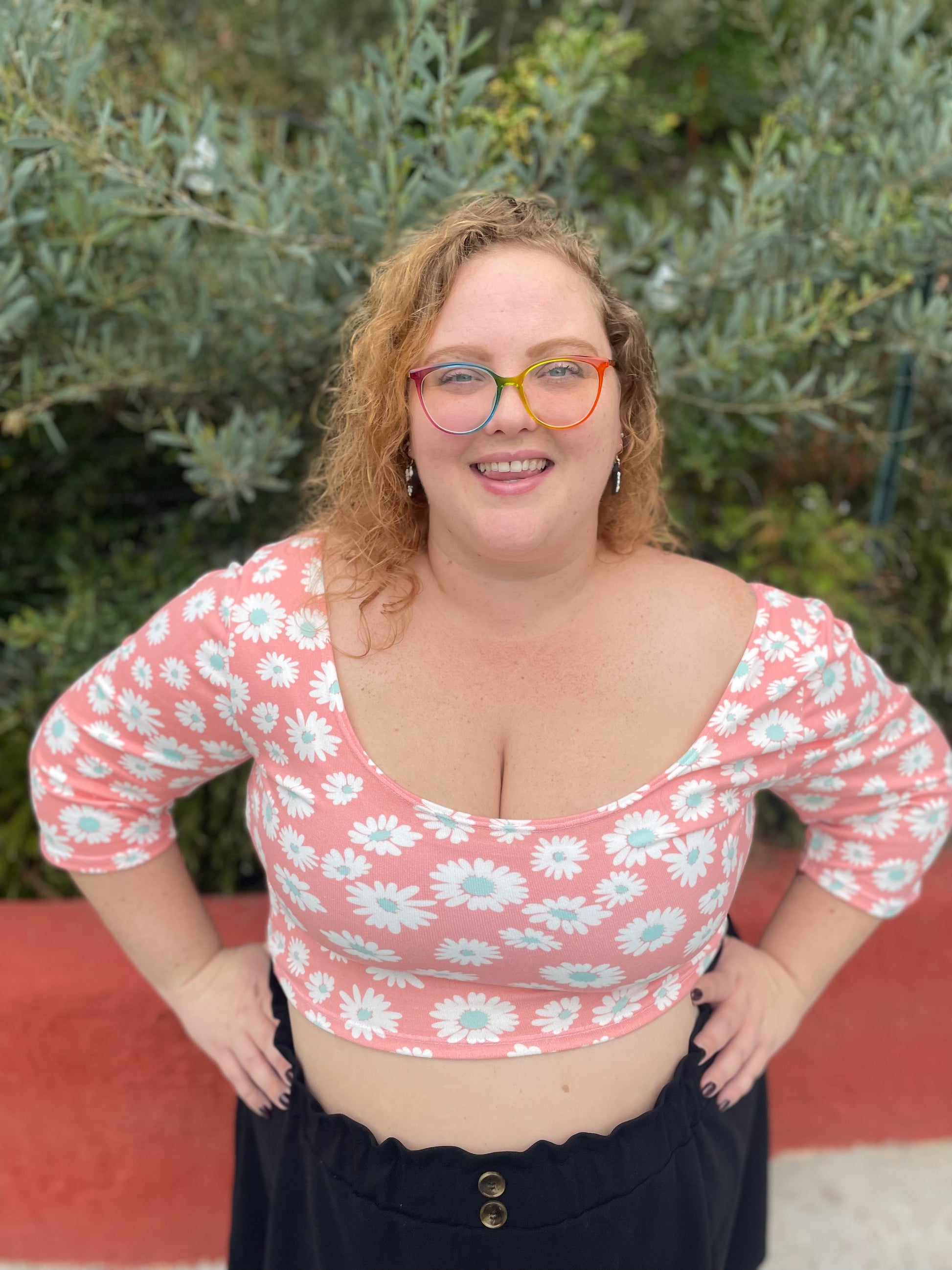 This is the crop I’ve always wanted… slightly longer than most crop tops, longer sleeves, but a generous scoop neck and swoop in the back to show plenty of skin. An excellent piece for layering with overalls, jumpers, dresses, coats, high-waisted skirts, pants, leggings.