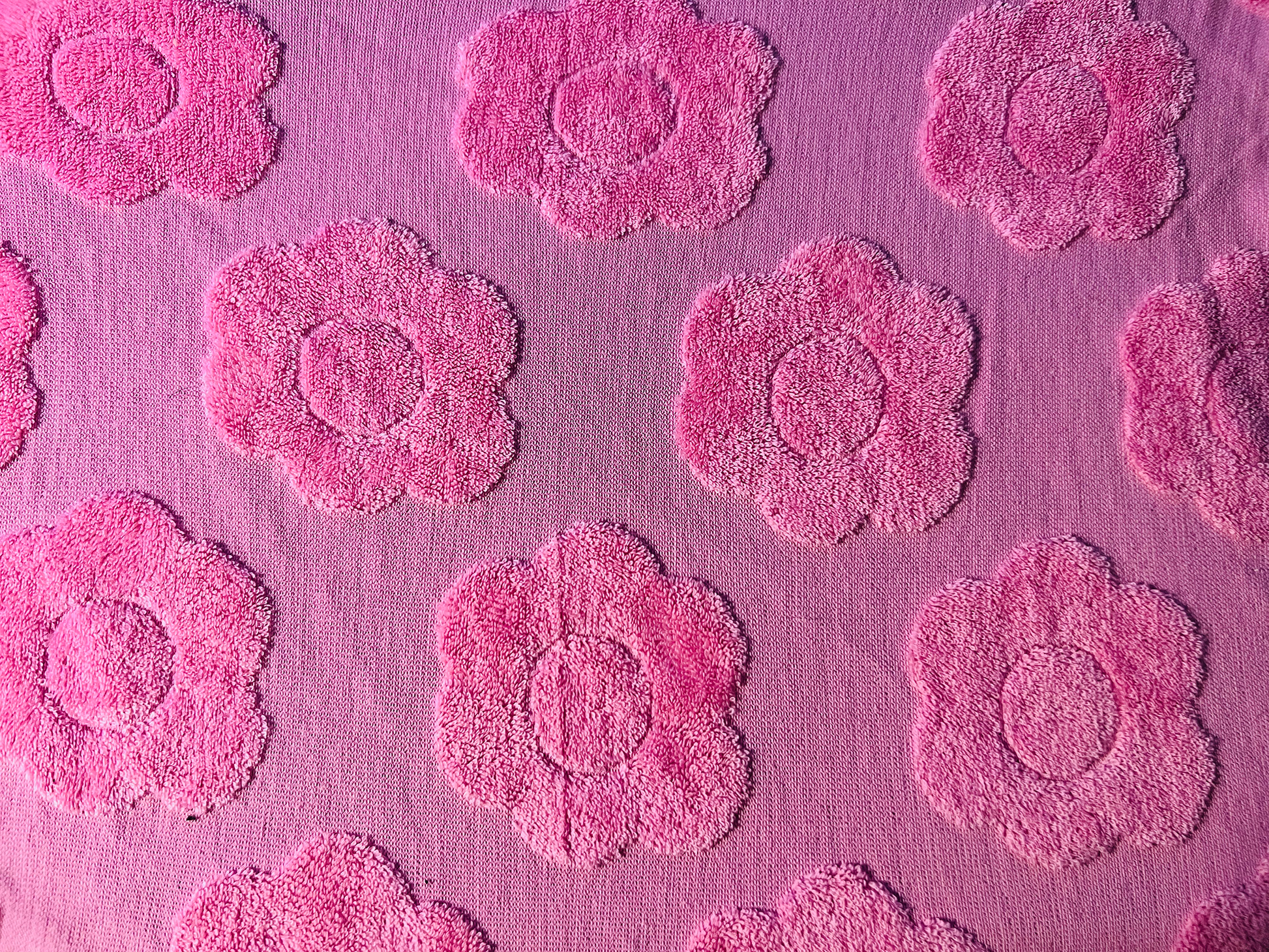 Ethically-sourced from remnants fabric (thanks, Ragfinders!), we fell in love with the soft stretchy bubblegum daydream of it… totally a coincidence that the Barbie movie is coming out in two weeks! This is a more relaxed and loungey version of last summer’s HOE (Heaven On Earth) robe…. The Dolly is a couple inches longer and less fitted in the sleeves and shoulders. We love the deep patch pockets and cuffed 3/4 sleeves! As adorable as this robe is for wearing around the house, it’s also perfect for days at the beach or the pool and it’s lightweight enough to be easy to pack for travel! The fabric is rayon with the sweetest little cotton terry towel daisies and it has some stretch to it. This runs very true to size but feel free to size up if you want it even more loungey.