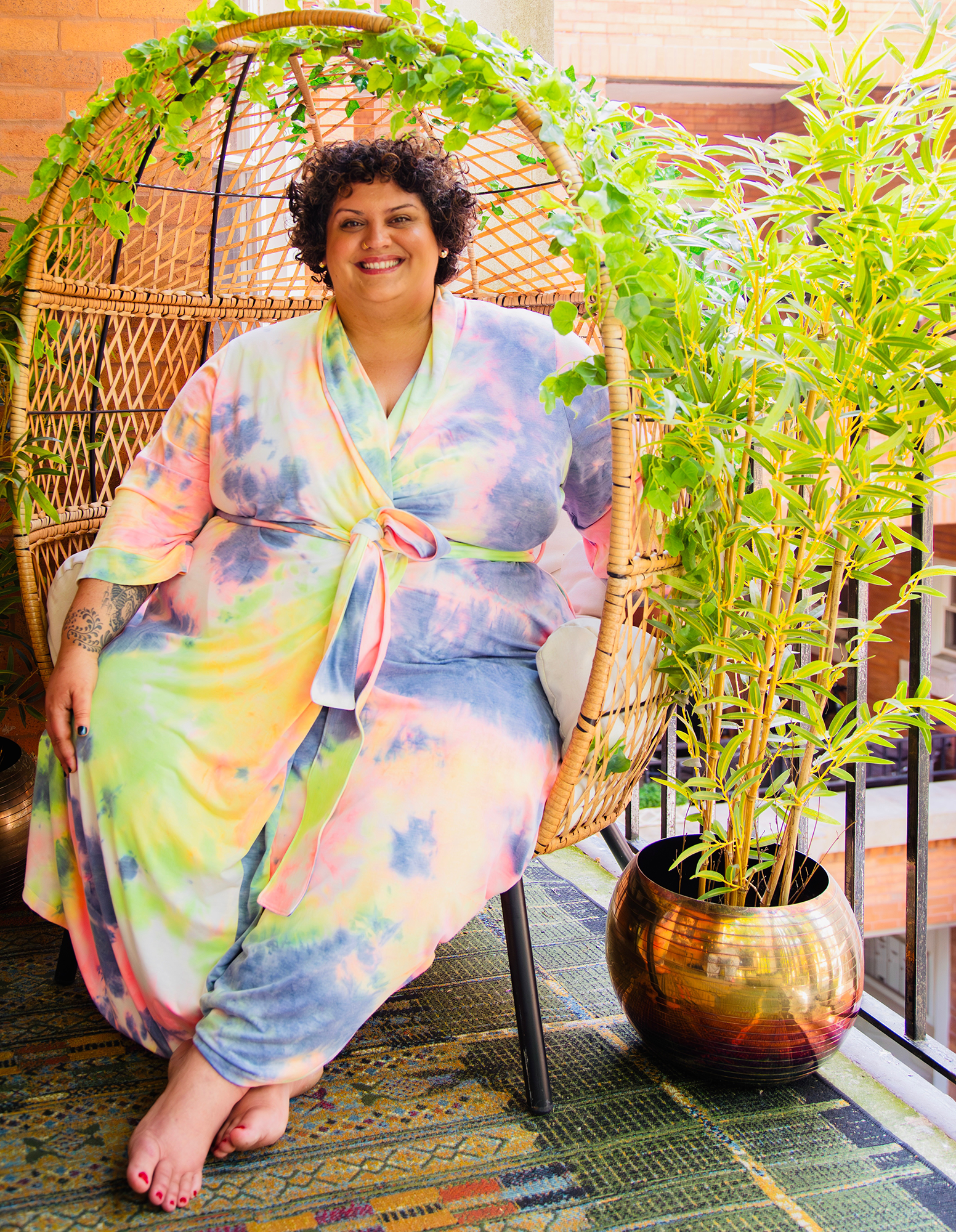 Our Kush robe is where Peridot was born and our newest version is our best one yet! We have classic 3/4 sleeves and deep pockets, a longer hem for swishing around the house, a gathered collar for a cozy touch but lightweight fabrics that won’t make you overheat! All of these fabrics are natural fiber blends with good stretch: The black one is a rayon cotton blend with a slub texture, the rainbow sherbet tie dye is a rayon jersey, the terra cotta tie dye is the most exclusive bamboo modal! Each one is easy to wash and ready to wear! We are THE plus size robe company so your curves will be draped in luxury with a perfect fit! Do not EVER size up in our pieces, if you’re particularly petite please go down one size.
