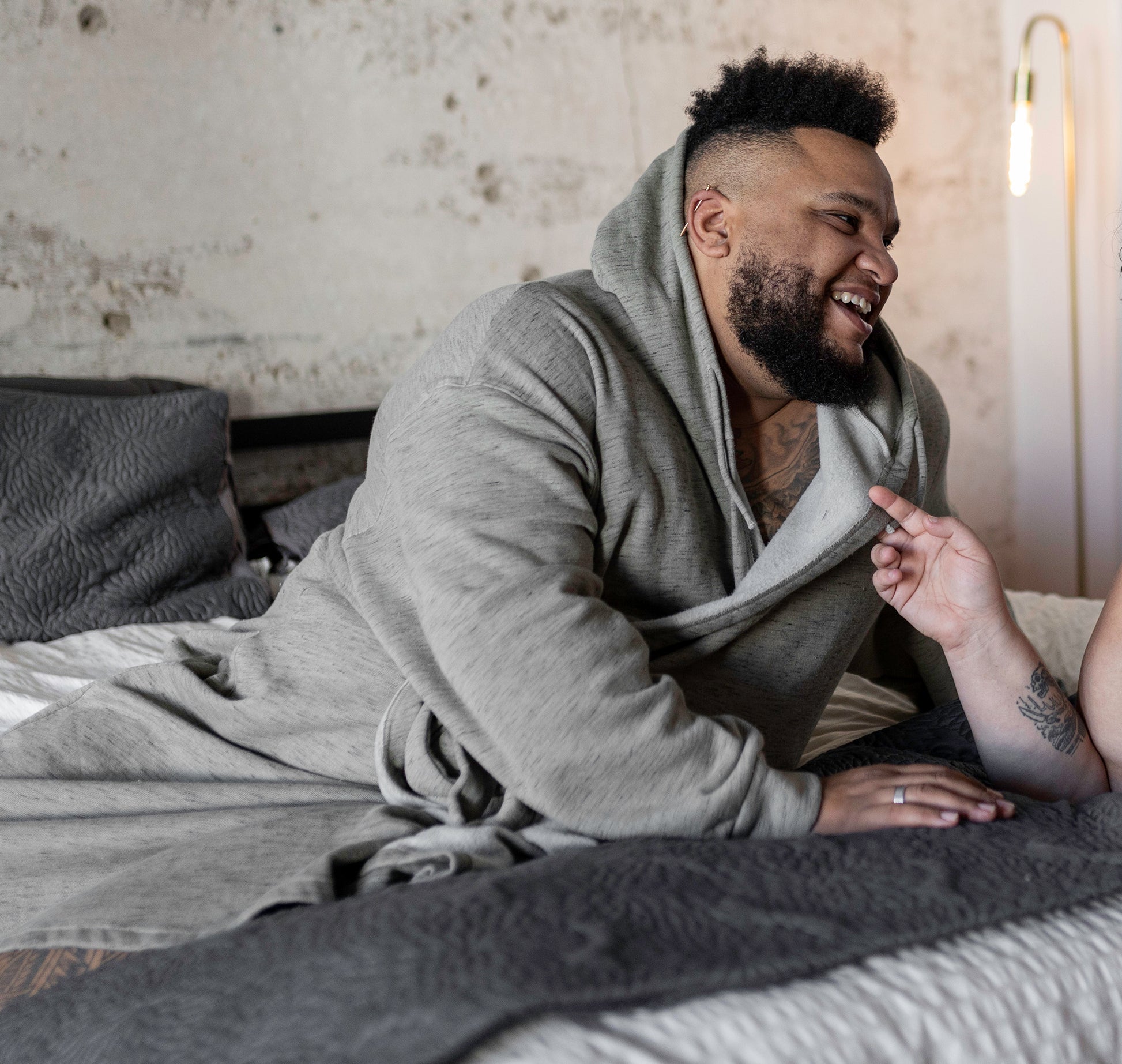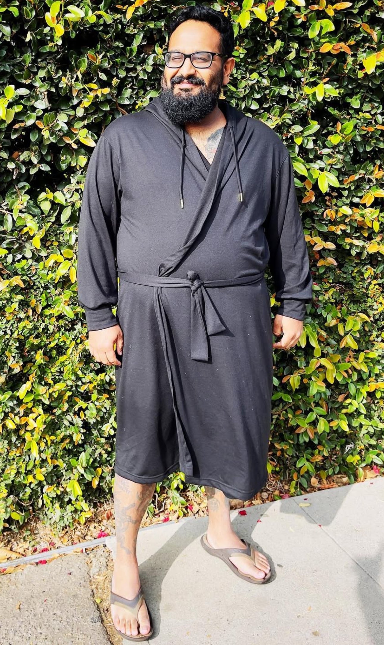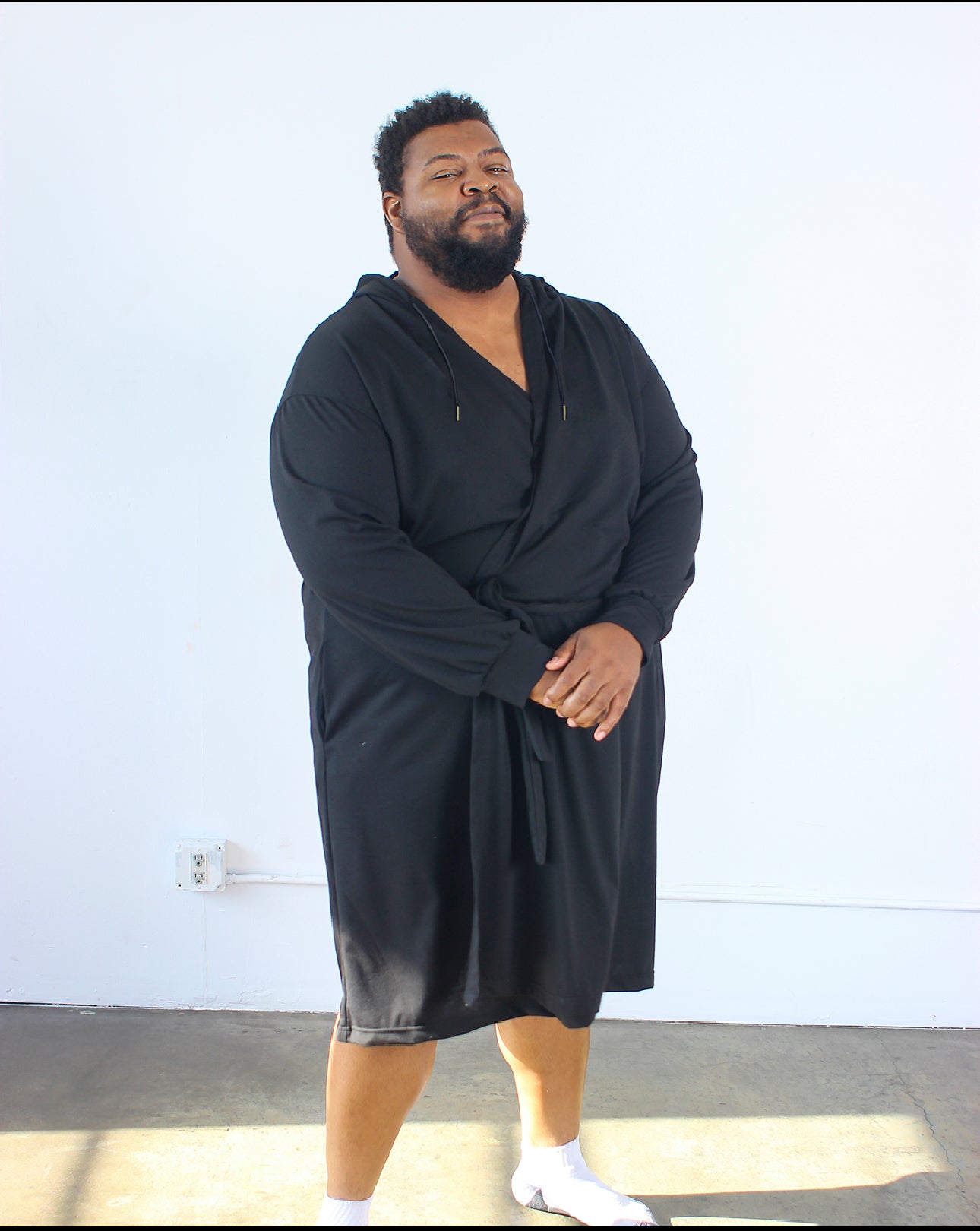 The Cuddle Hoodie is our plushest, fluffiest, warmest, snuggliest robe we've ever made! This is the THICKEST robe we've ever offered, but it's somehow still not heavy and very easy to wear! It's just right for someone who craves a big cloud of comfort around them! If you lay in bed, unable to get up and leave your cozy den of blankets and pillows every morning, this is definitely the robe for you. The mushroom fabric is an ultra luxe blend of bamboo and cotton with just a touch of stretch from elastine. The black is a lovely fleece, sooo soft to the touch! All of our fabrics are ethically sourced and then put together in our femme-owned fair-wage sewing room. Peridot means luxurious comfort and sustainable practices you can be proud to support! There isn't a lot of stretch to this fabric but it is *generously* cut so please do not size up! Ships in the next few weeks, it will definitely be there before Christmas!